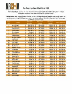2023 NRCHA Open & Non Pro Top Riders Lists