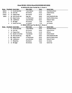Show 5 Open Two Rein Results & Judge’s sheets